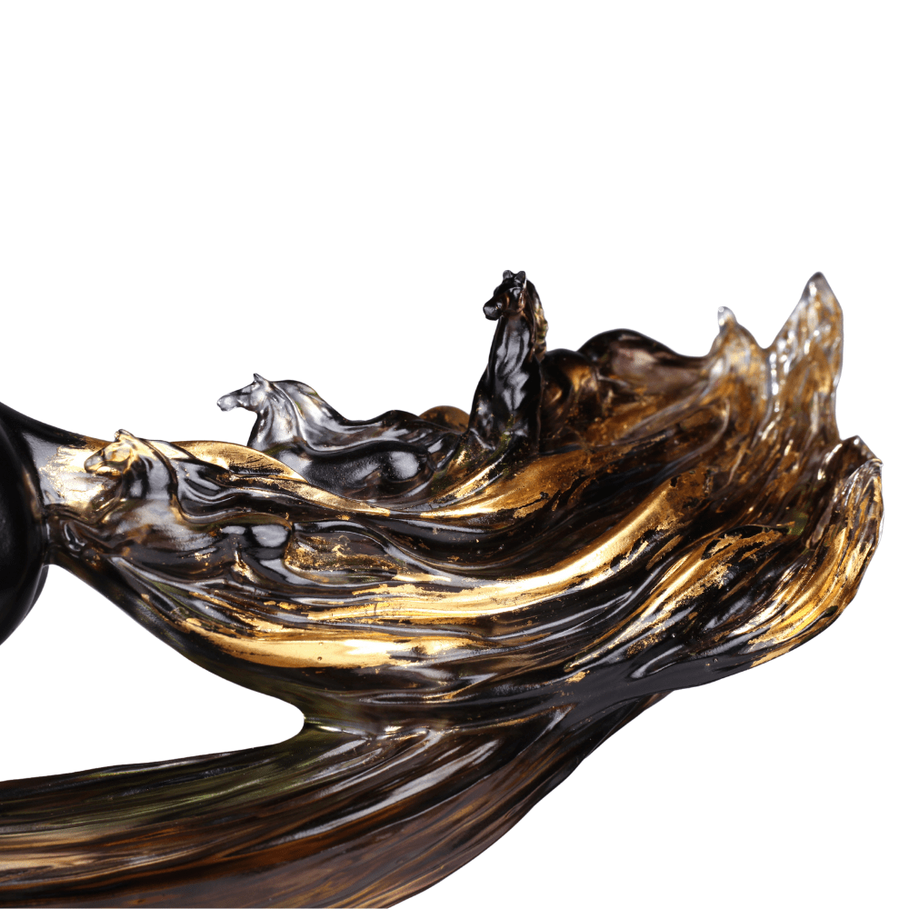 Collection:Horse Series 作品設計概念: Wind is direction; foresight and determination define its path. This horse charges forward with taut strength, mane streaming, unstoppable across boundless space. Look closer, and eight smaller horses emerge within its mane—extensions of its power, guardians in motion. Not a solitary gallop, but a kingly stride, leading all forward together. Every pose, every muscle, balances in mid-air like unwavering belief—strong enough to overcome any obstacle. |