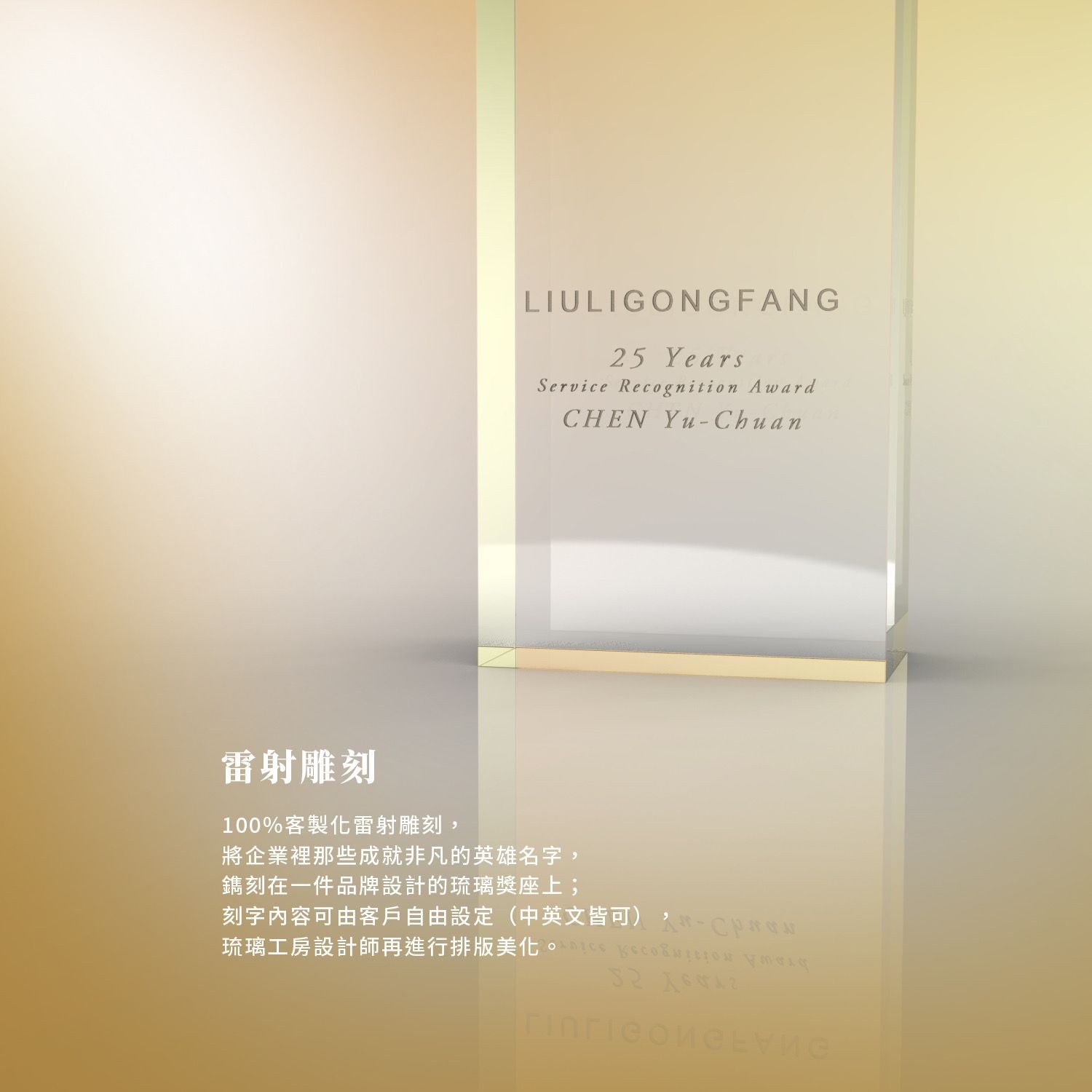鐳射刻字水晶獎座。無論是貴賓活動、節日問候、員工表揚或年終答謝等場合,這款蘊含祝福及企業商標的禮物必能倍增紀念價值。