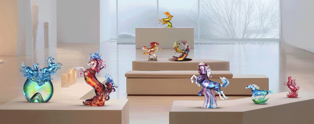 天地初開, 風、火、地、氣四種元素,是宇宙的律動。 當它們遇見了馬,便有了不同的姿態,成為我們心中跨越的象徵。 在琉璃光影穿透下, 猶如 生命的姿態 在空間中奔馳流動。